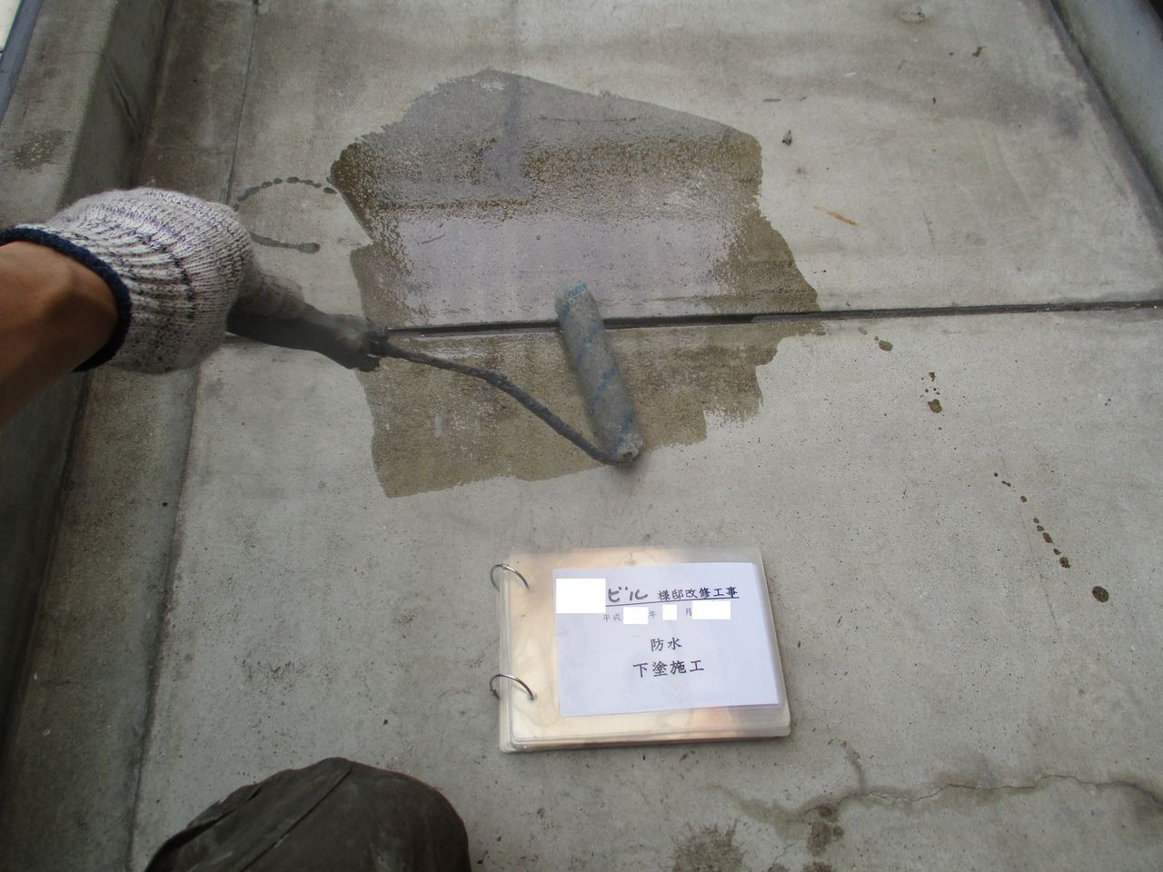 下塗り施工中