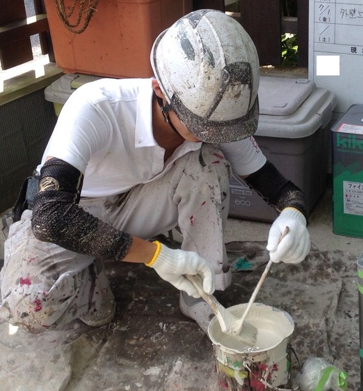 上塗り1回目作業中です・・・![]()