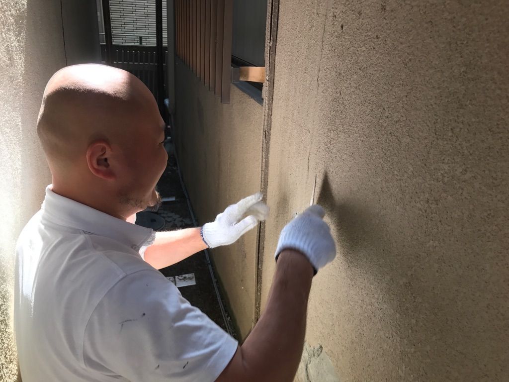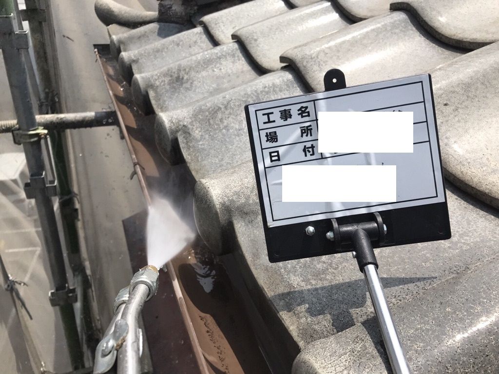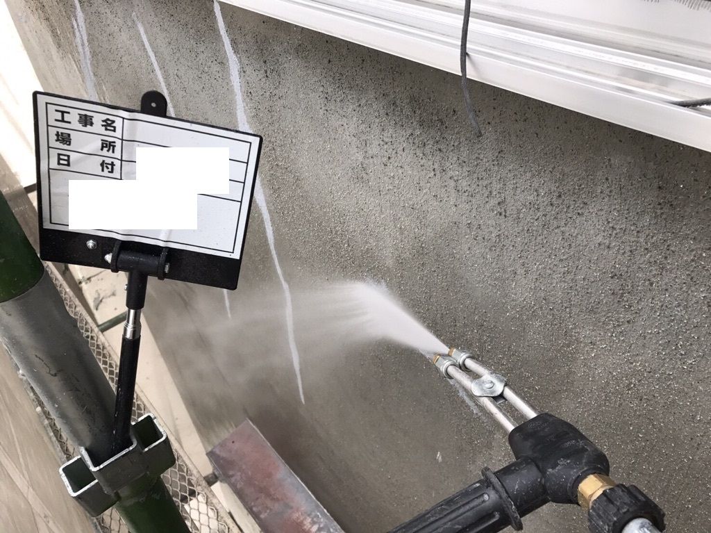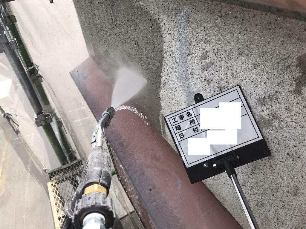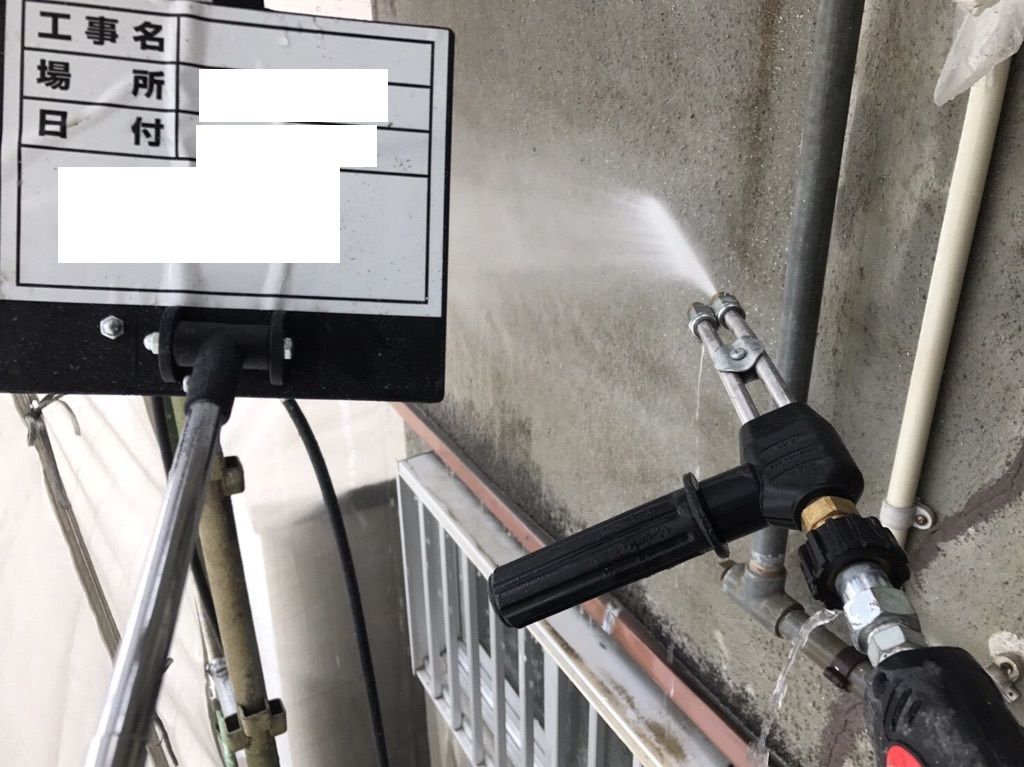大阪府東大阪市外壁 高圧洗浄中の写真です![]()